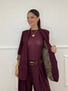 Giacca aperta monopetto in gabardine, con spalline rinforzate, collo sciallato e finte tasche a patta frontali. Dettaglio fodera interna in fantasia animalier.