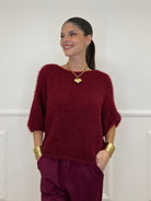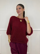 Maglia over girocollo in misto viscosa effetto mohair, con manica ampia a 3/4.