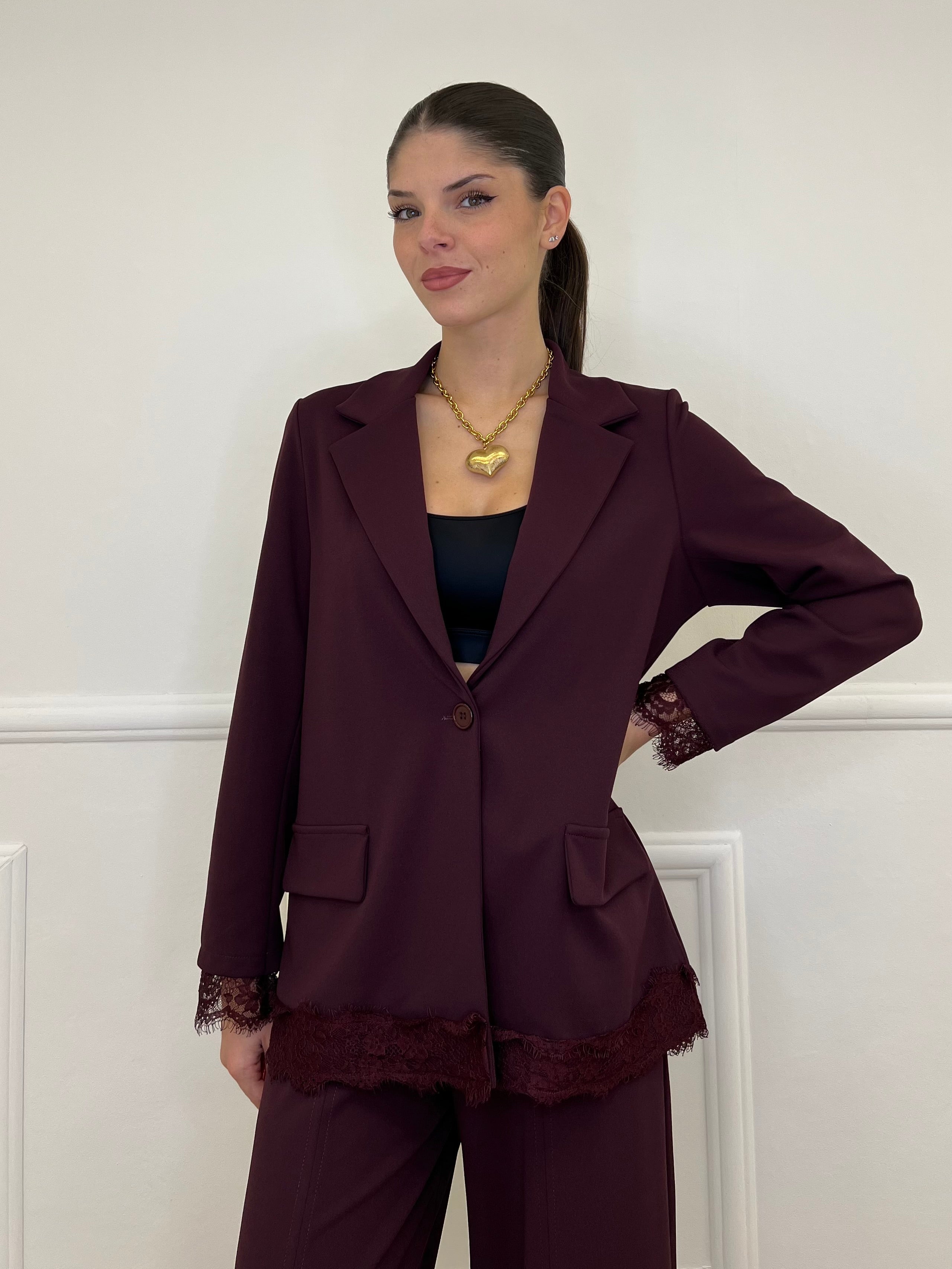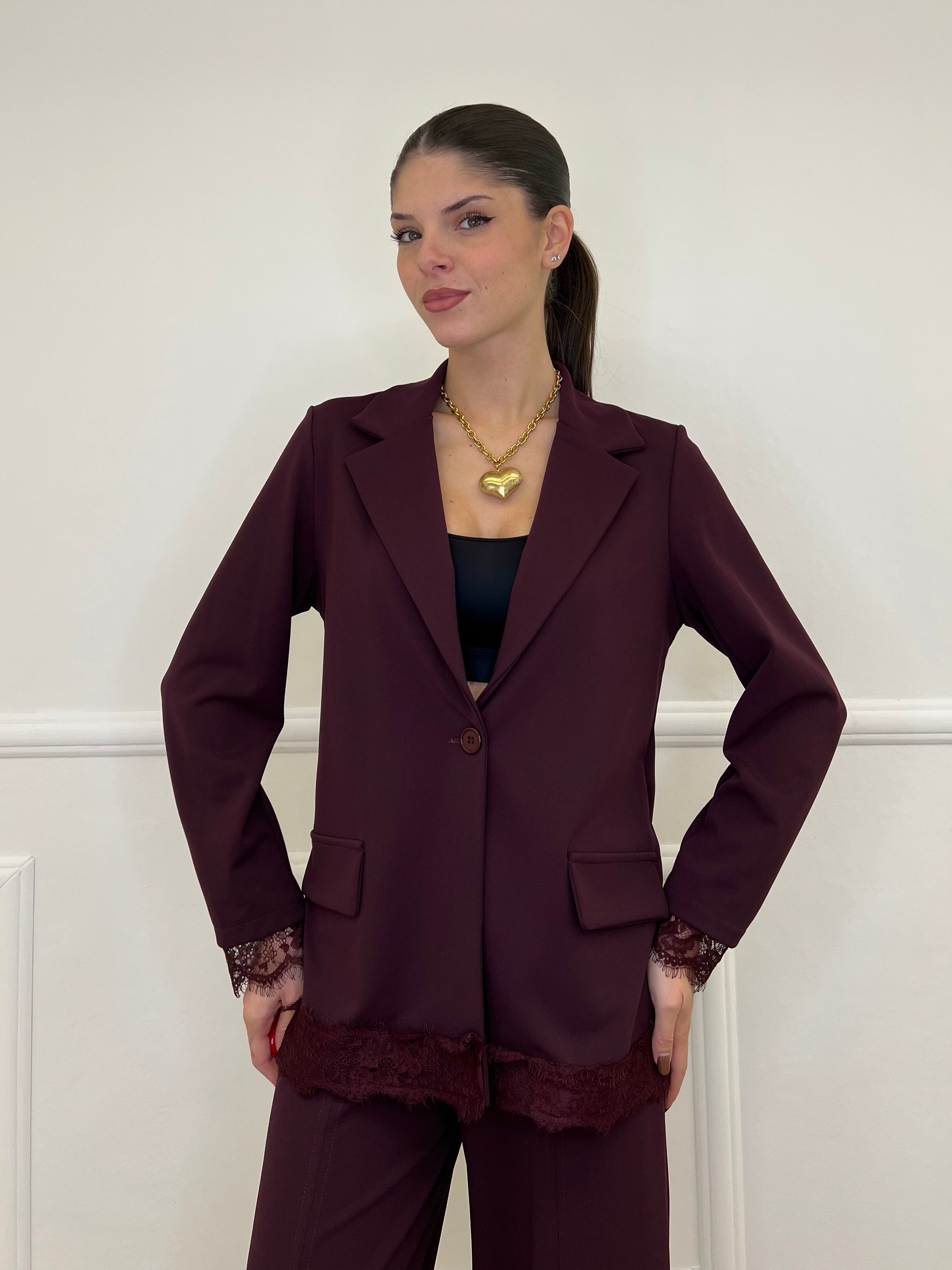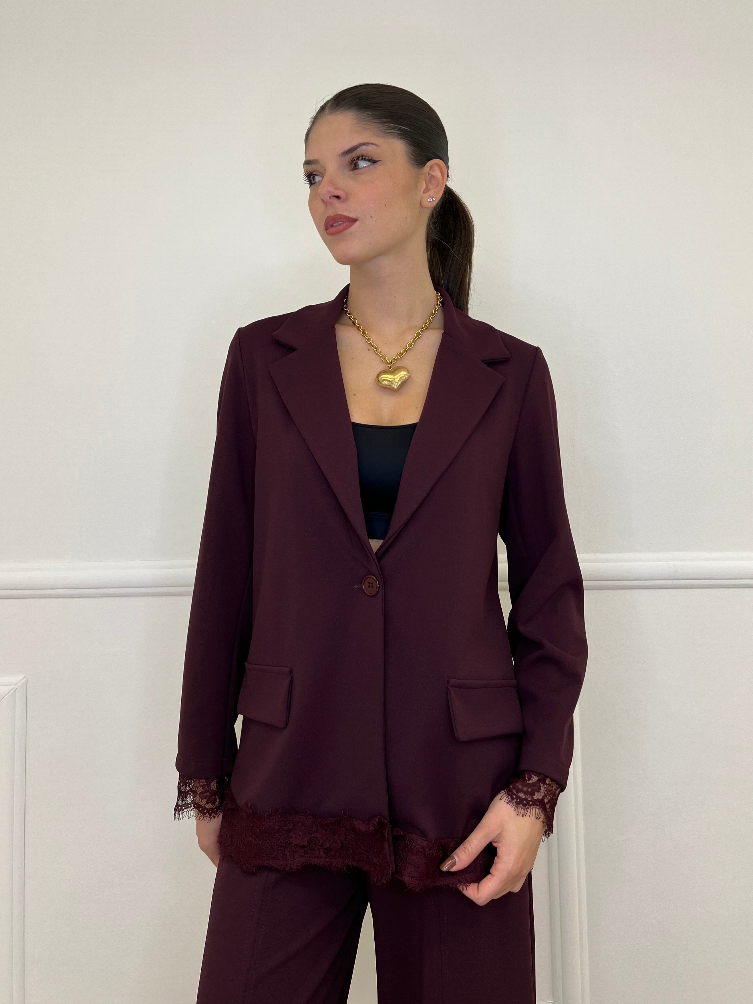 - Giacca monopetto sfoderata, regular fit con inserti in pizzo e finte tasche frontali;