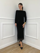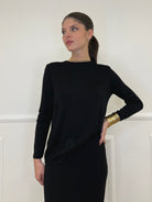 Maglia coordinata in misto viscosa elasticizzata a maniche lunghe con inserti in pizzo.