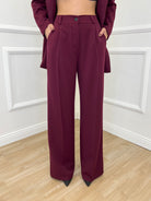 - Pantalone straight fit a vita medio alta con pinces, tasche ed elastico posteriore.