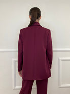 - Giacca doppiopetto foderata, taglio dritto, con spalline rinforzate, finte tasche a patta e collo con revers a lancia;