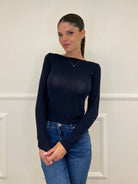 Super stretchy long-sleeved under-jacket sweater in viscose with ultralight cashmere and boat neckline.