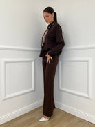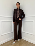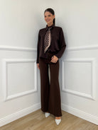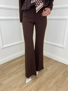 Low-waisted flare trousers in stretch crepe fabric, with belt loops at the waist.