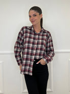 Oversized shirt in cotton flannel, in a madras pattern, with asymmetrical hem, dropped sleeves and back pleat.