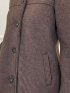 Brushed ribbed neoprene coat with side pockets and a hood. The brushed interior ensures warmth and comfort on any occasion.