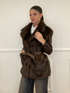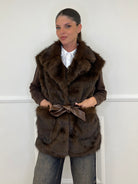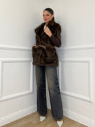 Sleeveless Fur Coat 8672 Coffee