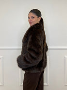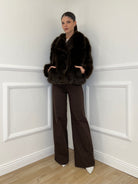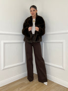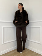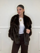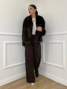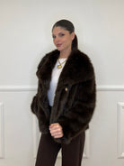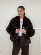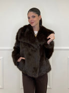 Lined eco fur, oversized model, with wide lapel collar, double-breasted fastening with snap buttons and side welt pockets.