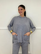 - Oversized sweater with front pockets, hood, side slits and heart pendant;