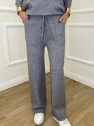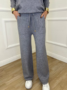 - Mid-rise palazzo trousers with side pockets, heart charm and adjustable elastic waist with drawstring.
