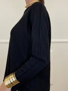 - Crew neck sweater with reverse stitching and rounded bottom with shortbread finish;
