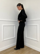 Oversized crew neck crop sweatshirt in stretch crepe fabric, with lined interior and elasticated hem.