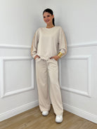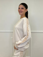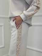 Non-brushed tracksuit in pure stretch viscose with chenille and sequin inserts composed of: