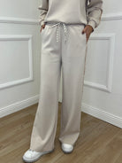 • Palazzo trousers with medium-high elastic waist adjustable with drawstring.