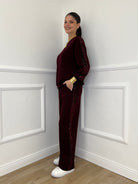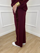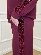 Non-brushed tracksuit in pure stretch viscose with chenille and sequin inserts composed of:
