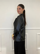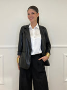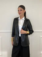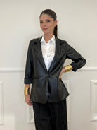 Single-breasted, unlined jacket in faux leather, with brushed interior, fake front pockets and classic lapel collar.