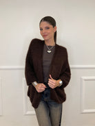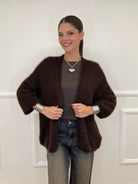 Open cardigan in mohair-effect viscose blend, oversized model, with linked bottom detail.