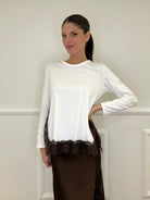 Regular-fit, long-sleeved T-shirt in pure stretch cotton, with contrasting lace inserts and side slits.