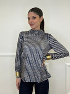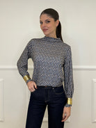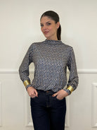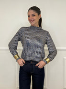 Long-sleeved sweater in stretch jersey with a geometric pattern and a soft volcano neck.