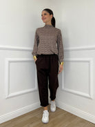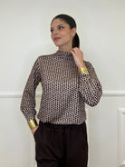 Long-sleeved sweater in stretch jersey with a geometric pattern and a soft volcano neck.