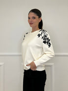 Relaxed-fit crew neck sweater in stretch viscose, with dropped sleeves and linked edges.