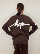 Oversized stretch viscose sweater with linked trims and dropped sleeves. Contrasting sponge embroidery detail on the front, sleeves, and back.