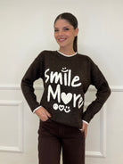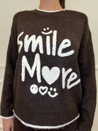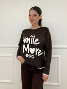 Stretch sweater in Shetland wool blend, with dropped sleeves, contrasting profiles and raised front embroidery.
