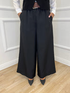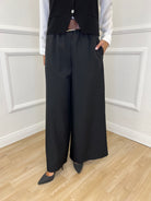 Palazzo trousers in gabardine with side American pockets and medium-high waist with elastic and belt loops.