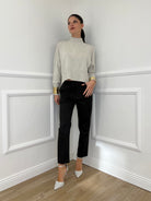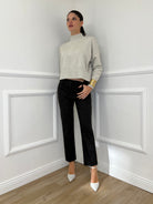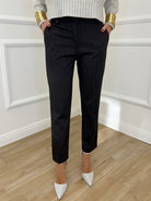 Milanese stitch cigarette trousers in a Prince of Wales pattern with side American pockets and a mid-rise waist with belt loops.