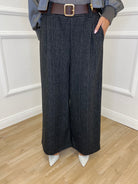 Herringbone Trousers with Rhinestones 53386 Anthracite