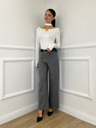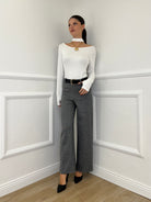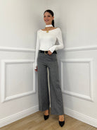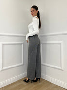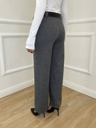 Stretch tweed trousers with a grisaille effect weave, with an elastic waistband with belt loops.