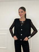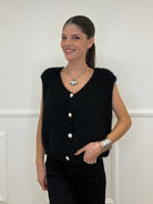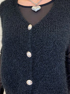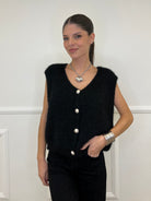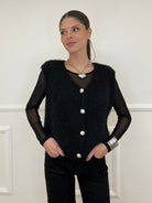 Single-breasted waistcoat in mohair-effect viscose blend with textured button detail.