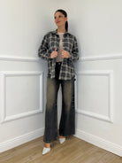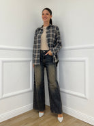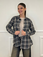 Madras cotton flannel overshirt with rounded hem and back pleat.