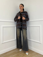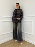 Madras cotton flannel overshirt with rounded hem and back pleat.