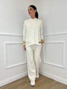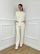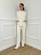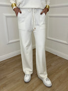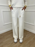 - Mid-rise palazzo trousers with side pockets, heart charm and adjustable elastic waist with drawstring.