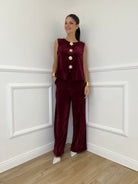 • Straight fit trousers with side pockets and elasticated waist at the back.