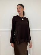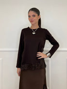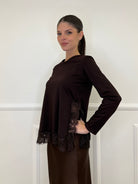 Regular-fit, long-sleeved T-shirt in pure stretch cotton, with tone-on-tone lace inserts and side slits.
