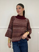 Oversized jacquard sweater in a wool and viscose blend in a herringbone stitch, with 3/4 raglan sleeves and a volcano neck.