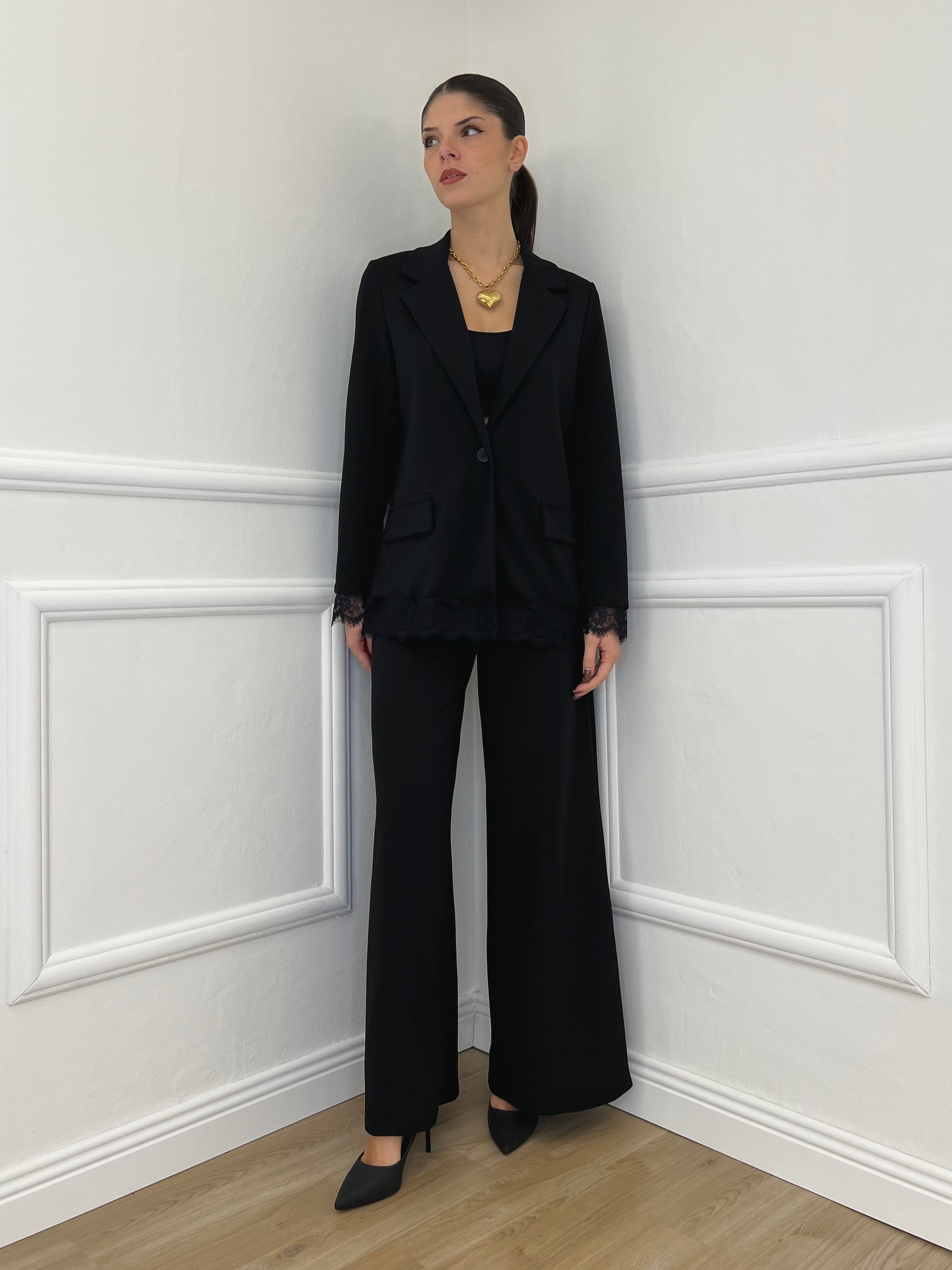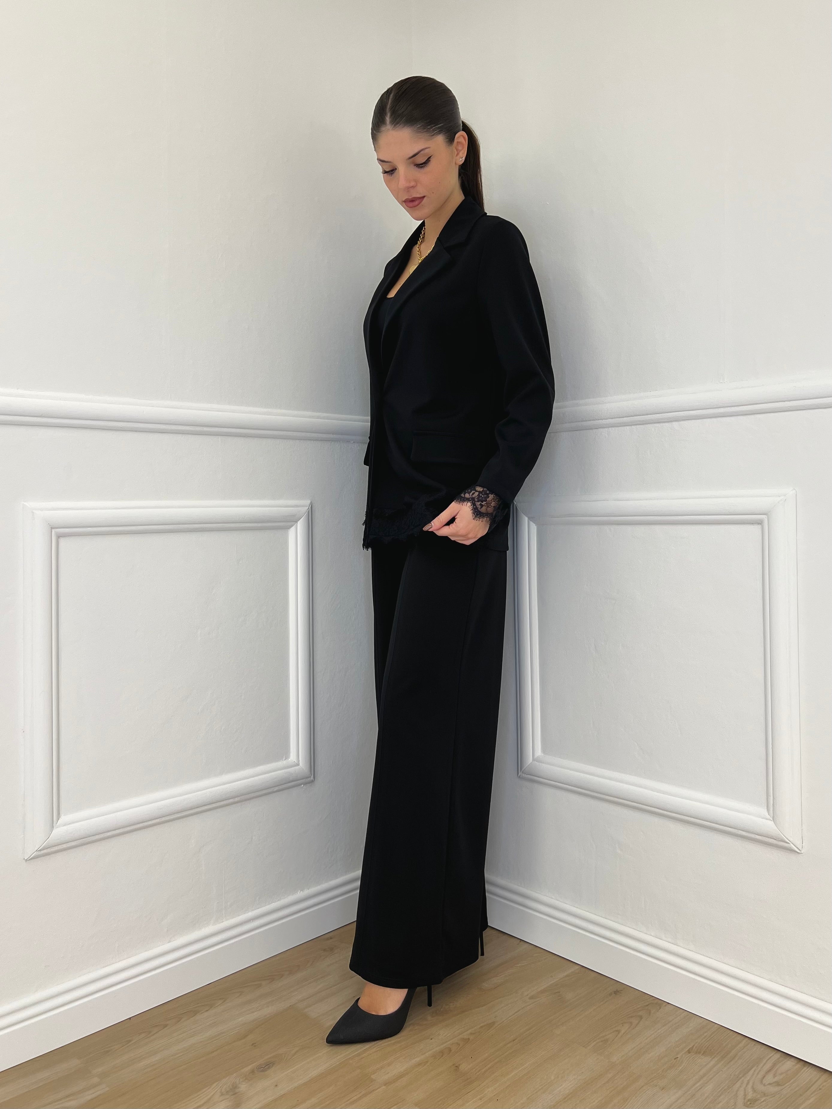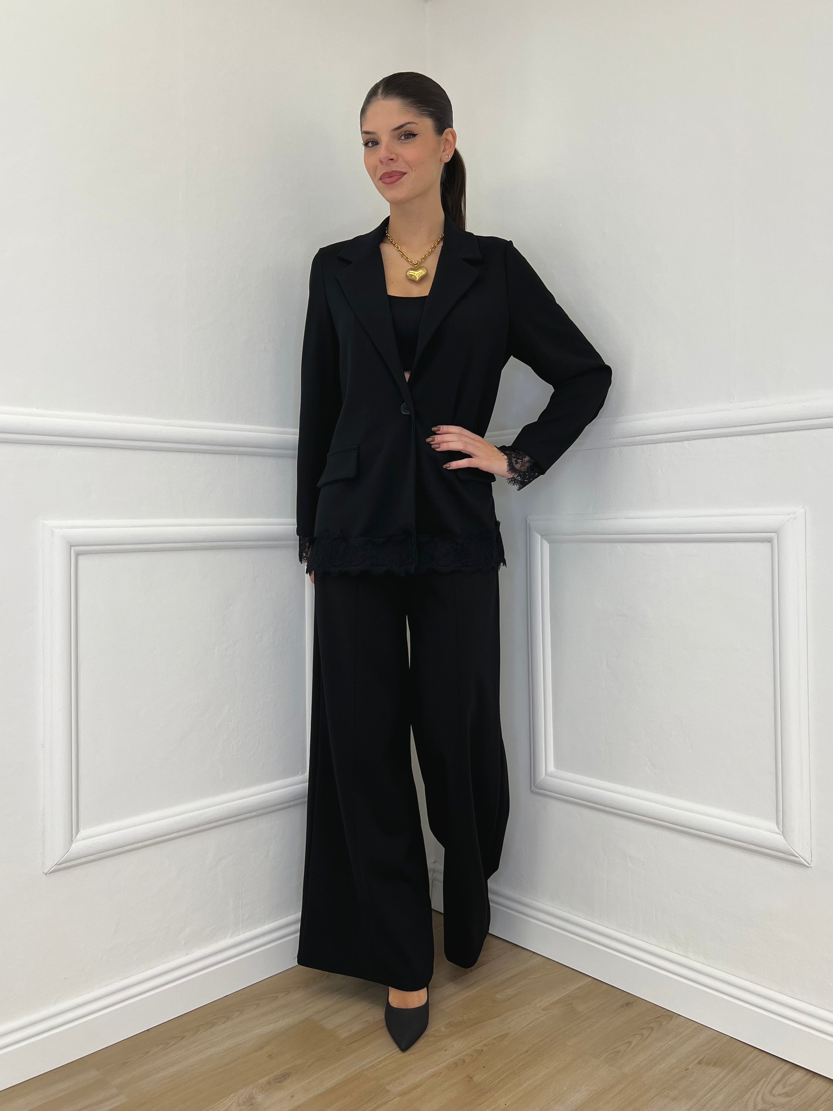 Completo Crepe Pizzo 55791 Nero