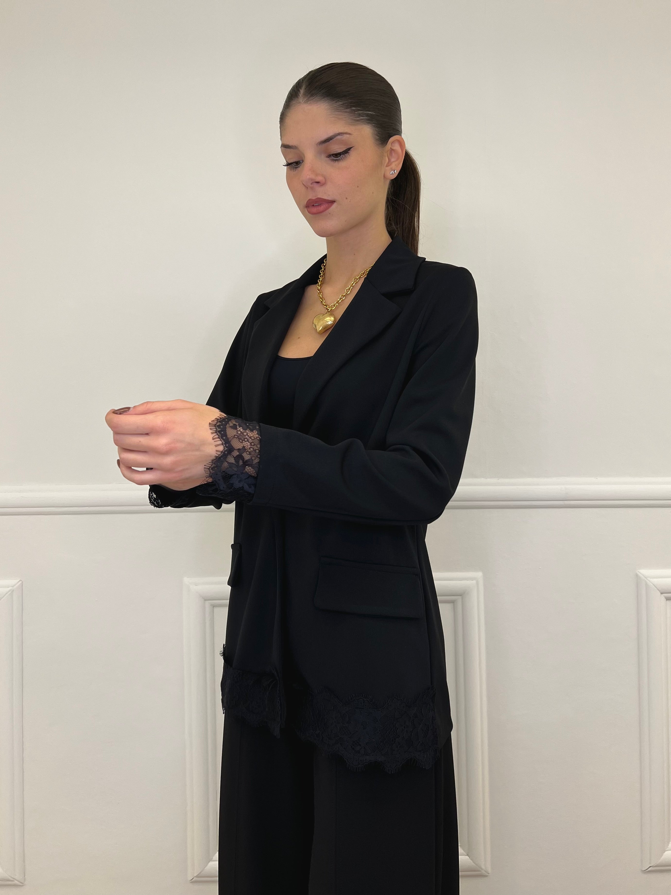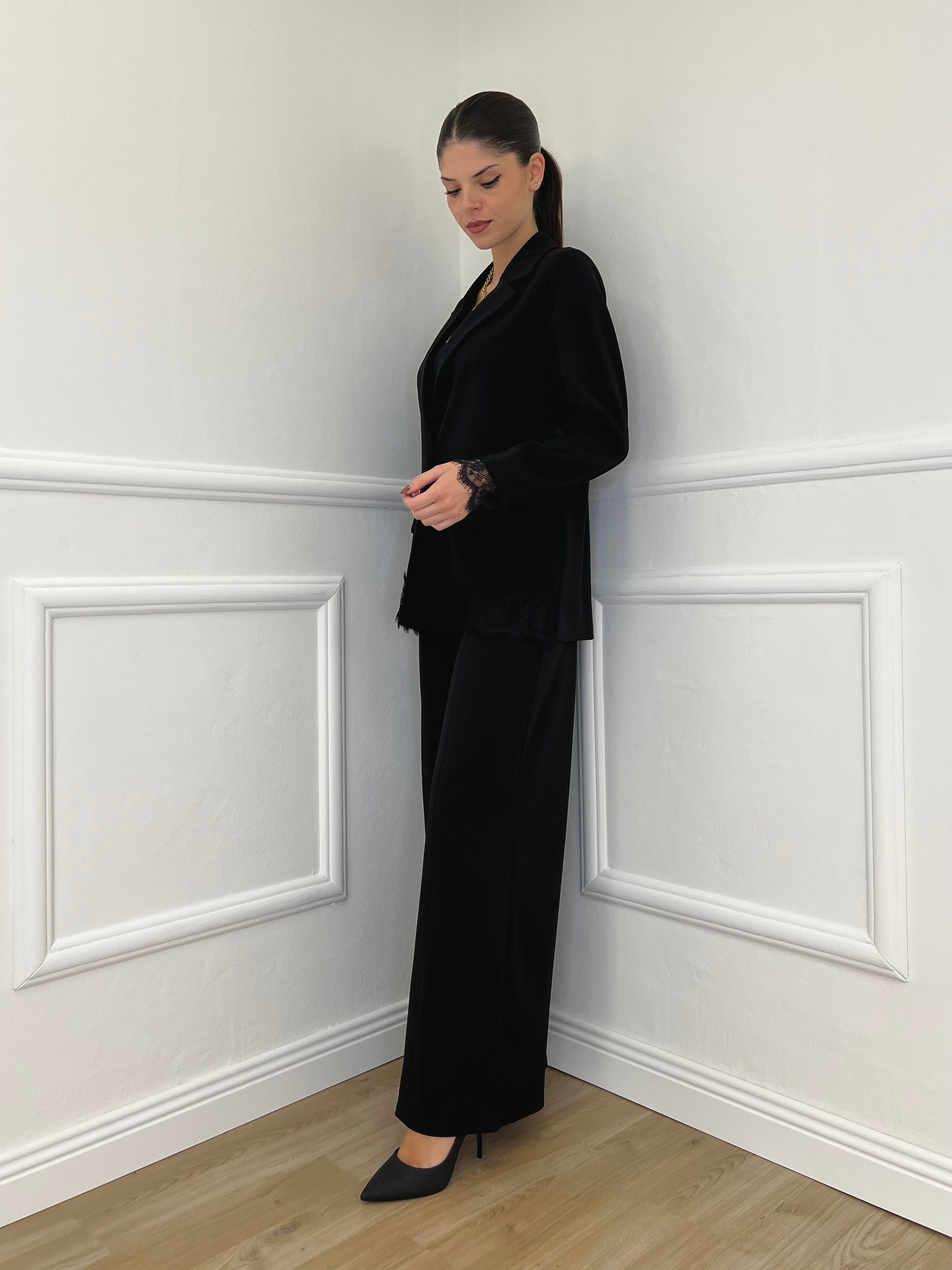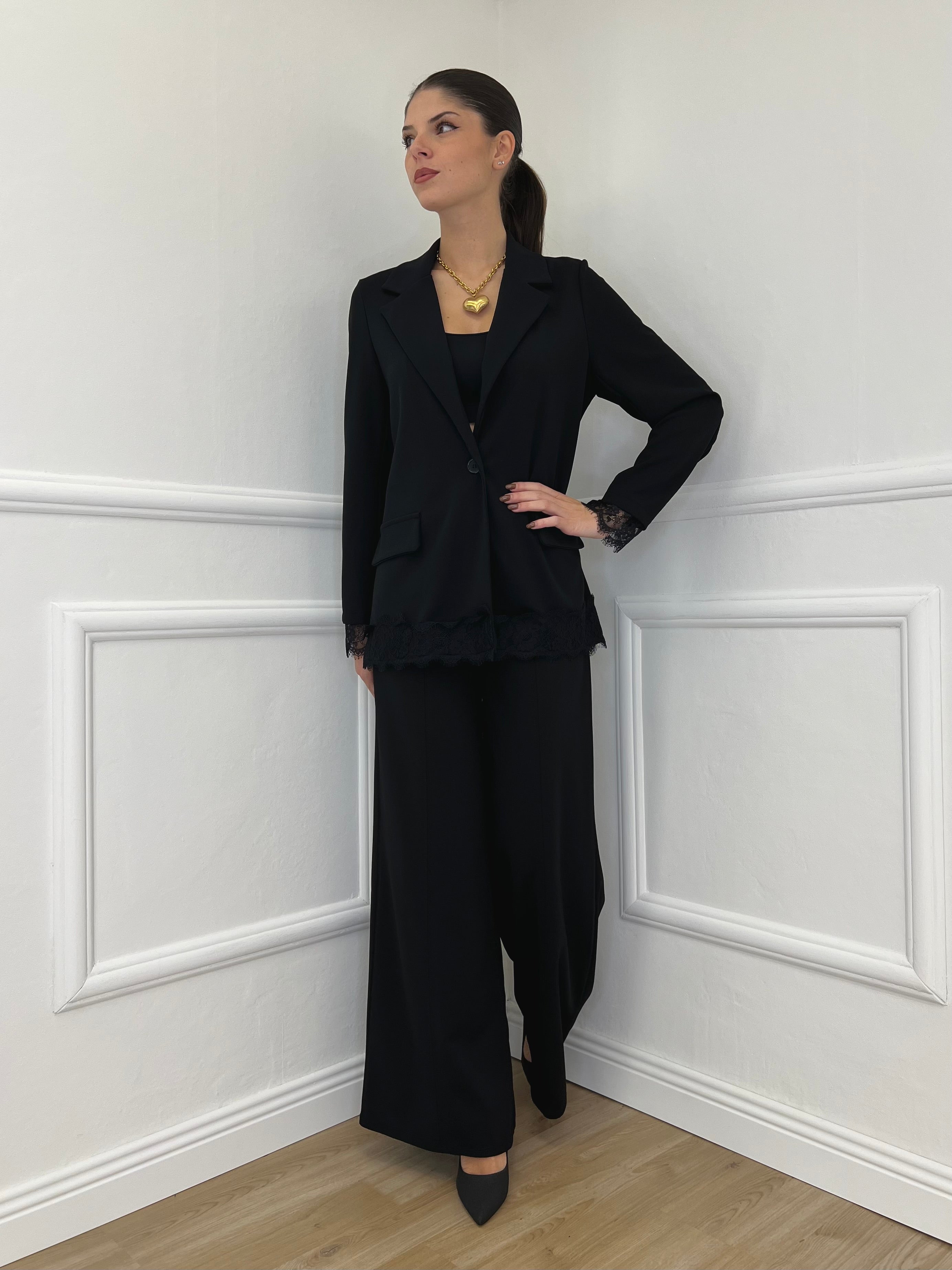 Completo Crepe Pizzo 55791 Nero