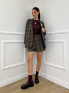 - Shorts a vita alta a caramella coordinato, con cintura scamosciata rimovibile.