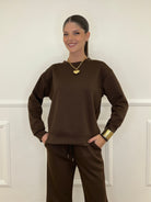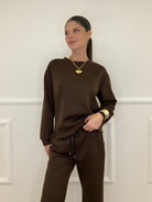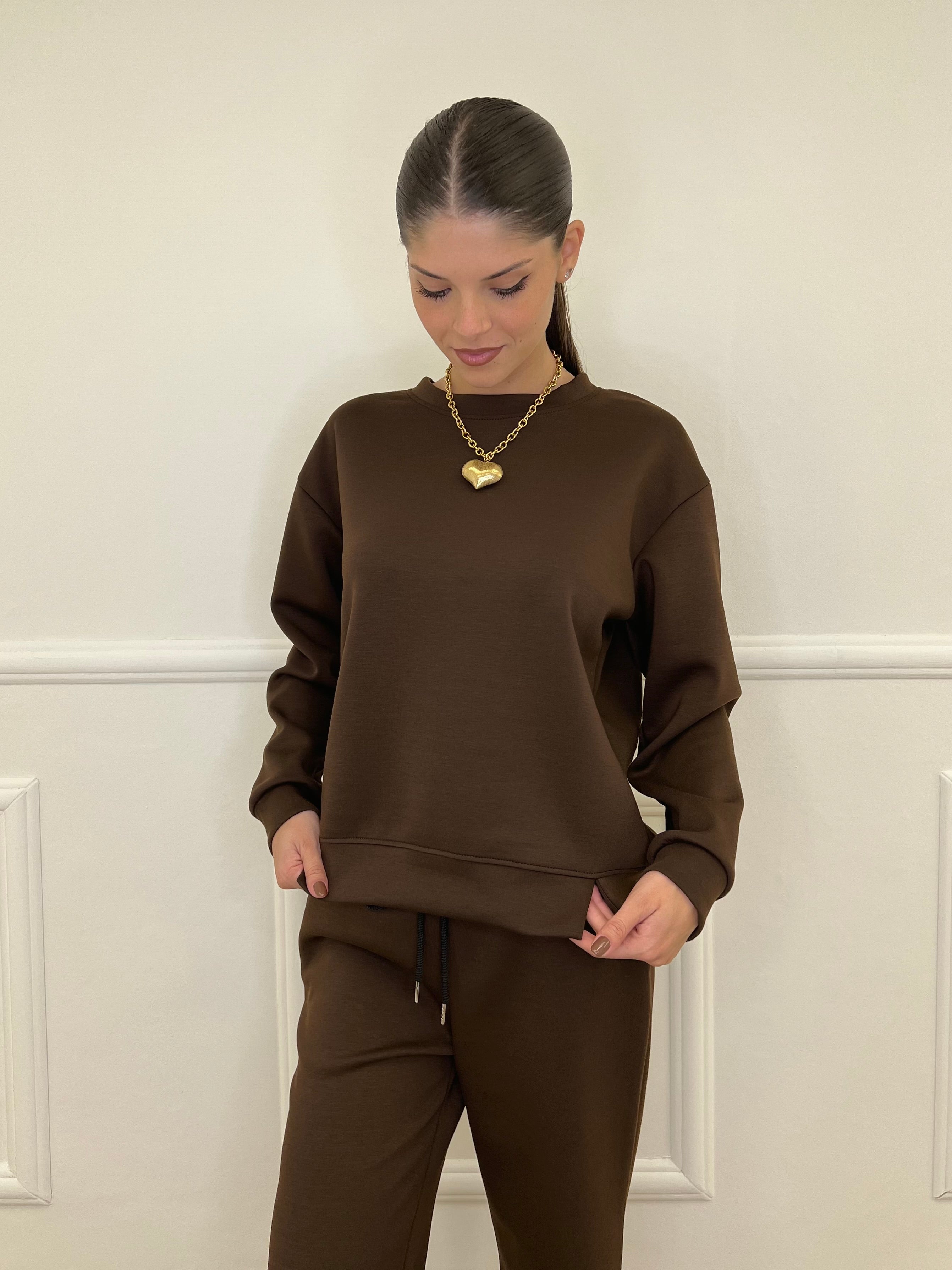 Felpa over coordinata a girocollo, in tessuto non garzato, con dettaglio spacchetti frontali.